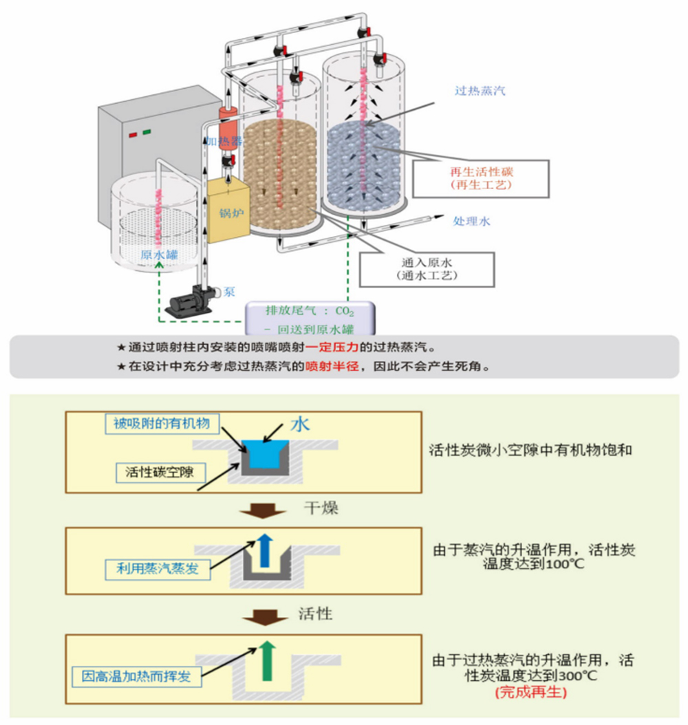 再生可去除已喪失吸附能力的活性碳中的被吸附物質(zhì),重新恢復其吸附功能的操作過(guò)程